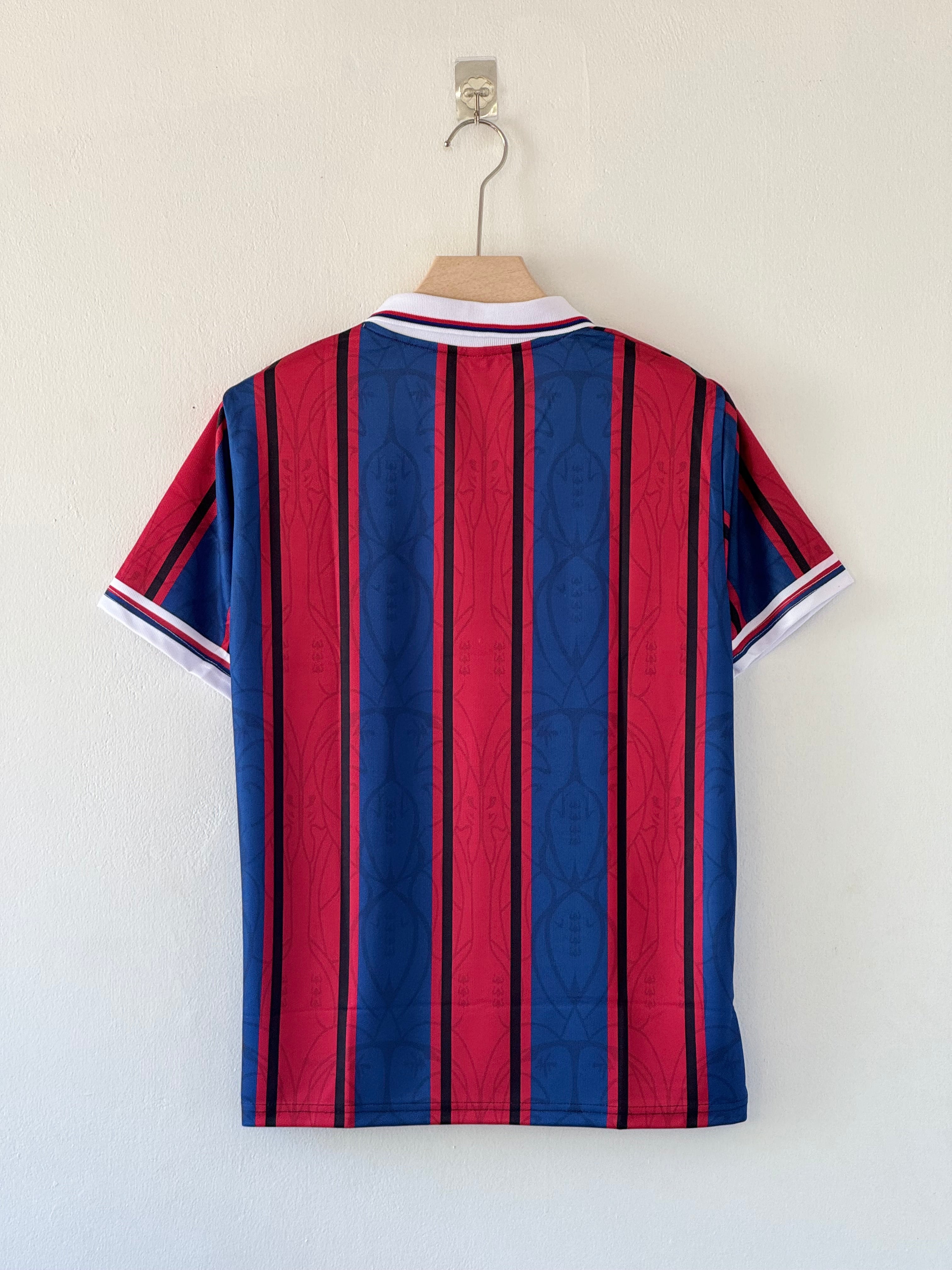 The 125th Anniversary Edition reimagines Barcelona’s classic Blaugrana stripes with a heritage-inspired layout, featuring deeper red and blue tones that reflect the club’s earliest kits. The FC Barcelona crest appears in a vintage gold finish, paired with a minimalist Nike swoosh for a refined look. Subtle woven details throughout the jersey showcase the years 1899–2024, symbolizing generations of greatness. Inside the collar, the iconic motto “Més Que Un Club” is proudly printed as a timeless statement of identity.